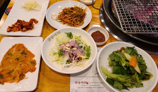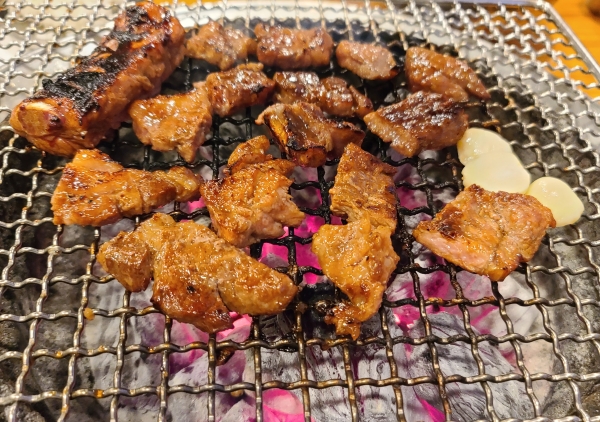 곧 우리가 주문한 갈비를 맞이하였고 열심히 불판에 올려서 구워 먹었음.