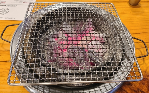 최근 방문했을 때는 한돈 프리미엄 양념갈비를 주문했고, 주문하면 아래와 같이 불 세팅 및 기본 반찬 세팅을 해주신다.