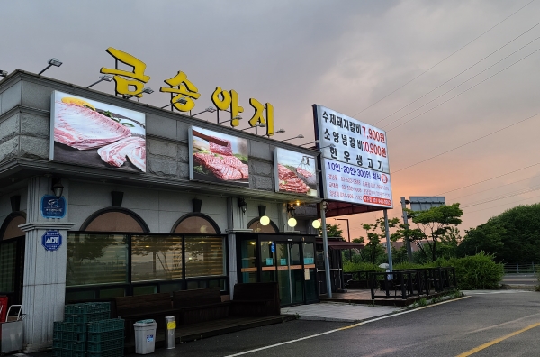 금송아지라는 곳인데 롯데 파주 프리미엄 아울렛에서 네비 찍고 5분이면 가는 가까운 곳에 위치해있다. 주차 공간도 부족하지 않아서 편하게 주차하고 식사할 수 있음.