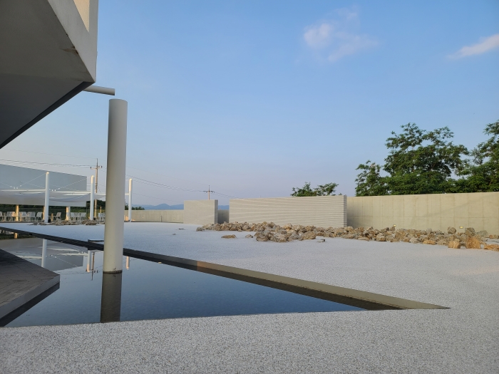 백사장 돌무더기 속? 조명이 은은하게 비추고 있어 더 느낌 있었음.