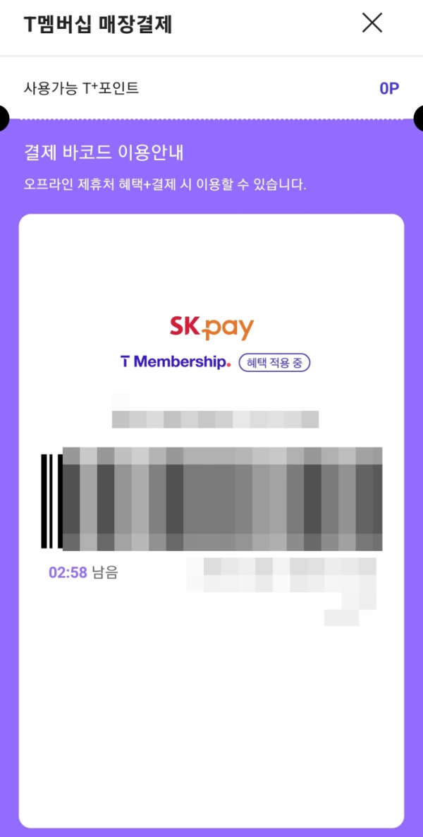 위 안내에 따라 나도 티멤버십 결제바코드를 생성해보았는데 안내에 따라 진행해보니 크게 어렵지 않았다.