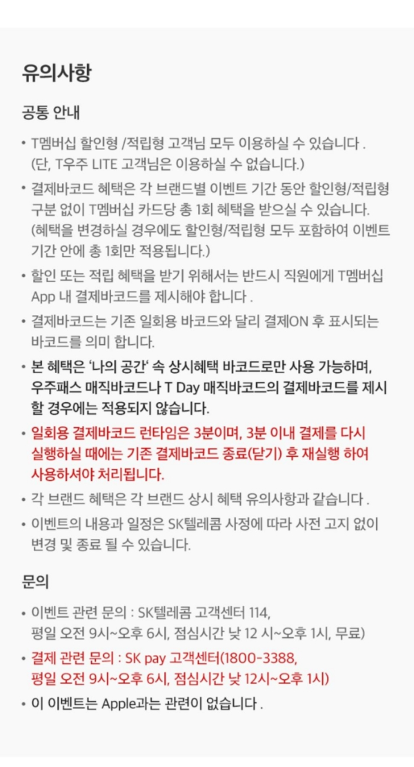 이상 티멤버십 결제바코드 행사 프로모션 정보 포스팅 끝.